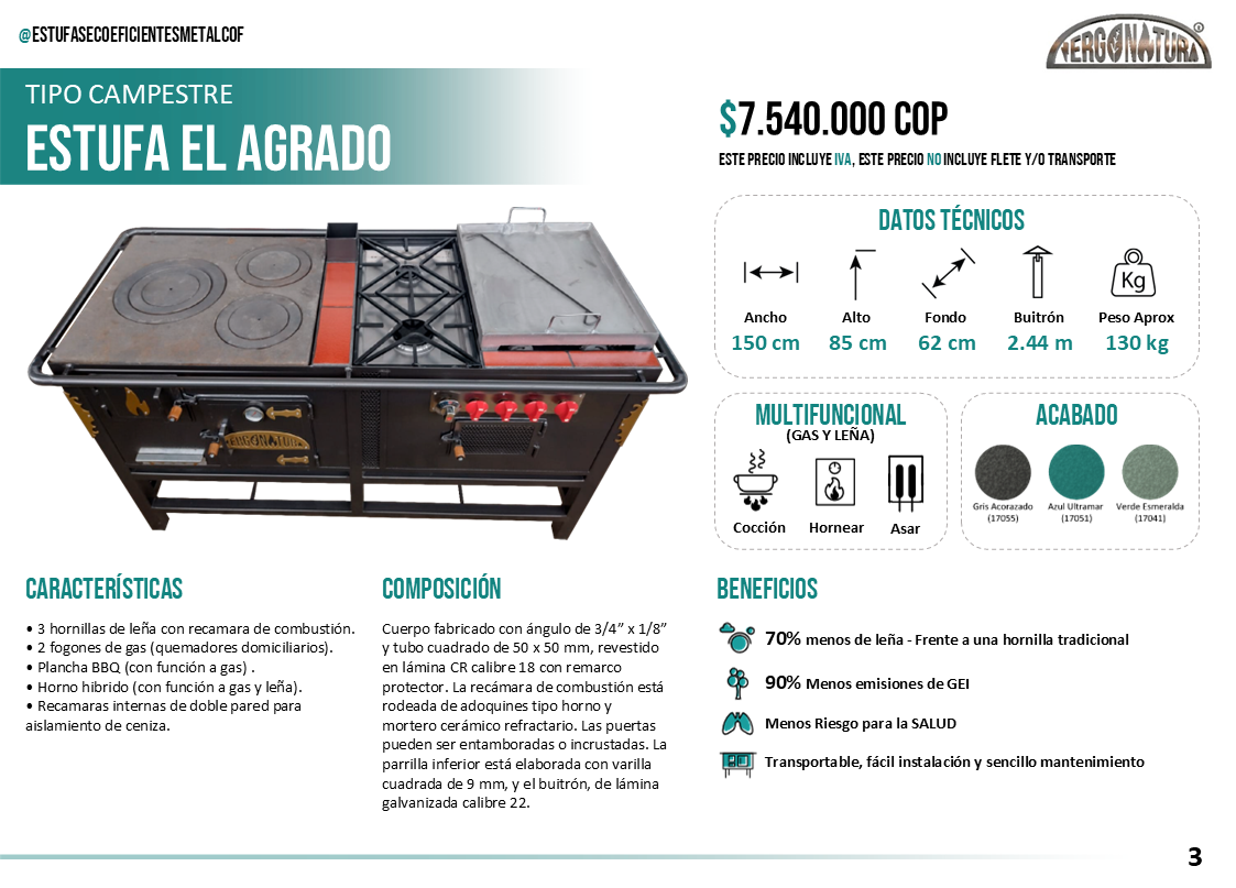 Las estufas ERGONATURA tipo Campestres son ideales para acompañar momentos de una forma natural y sostenible. Su diseños únicos las convierten en una pieza de colección con una poderosa eficiencia energética. Ideal para fincas, casas de campo, o diversos espacios donde se quiera compartir momentos especiales acompañados de una grandiosa comida.